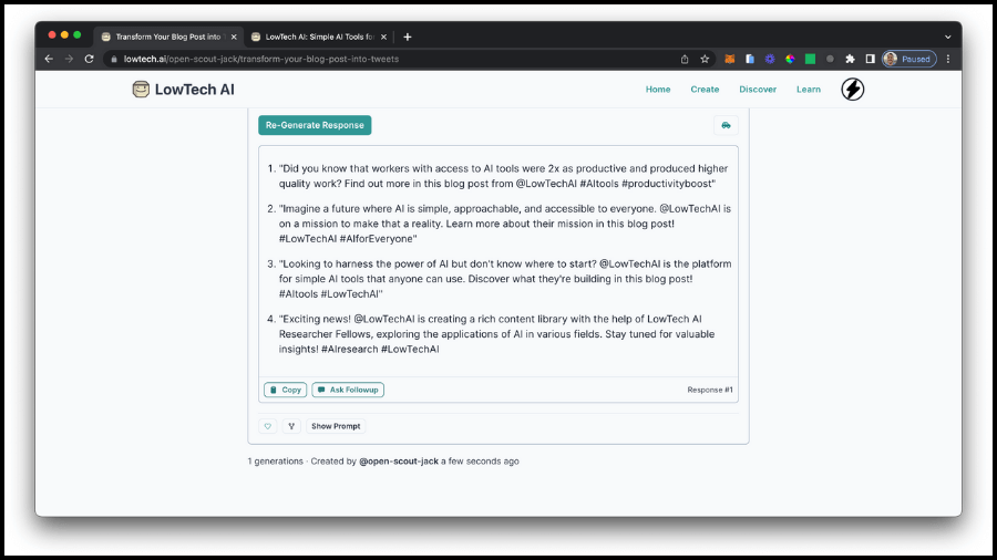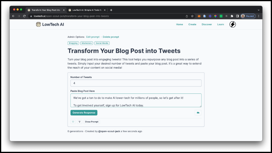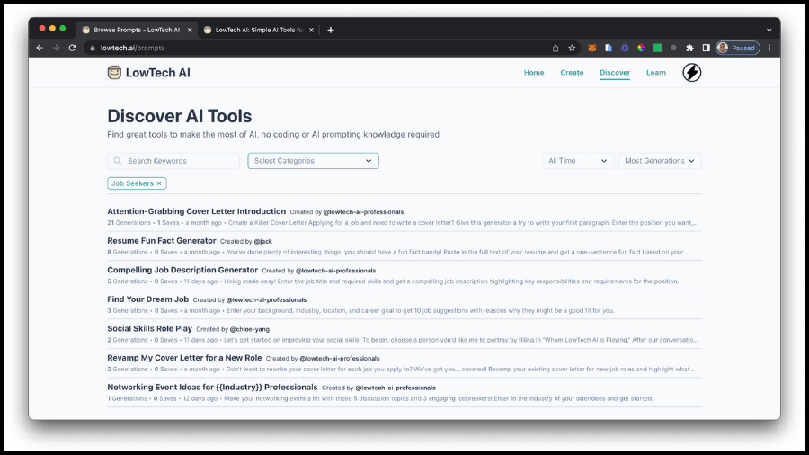 Visit LowTech AI to discover, use, create, fork, and share powerful AI tools.