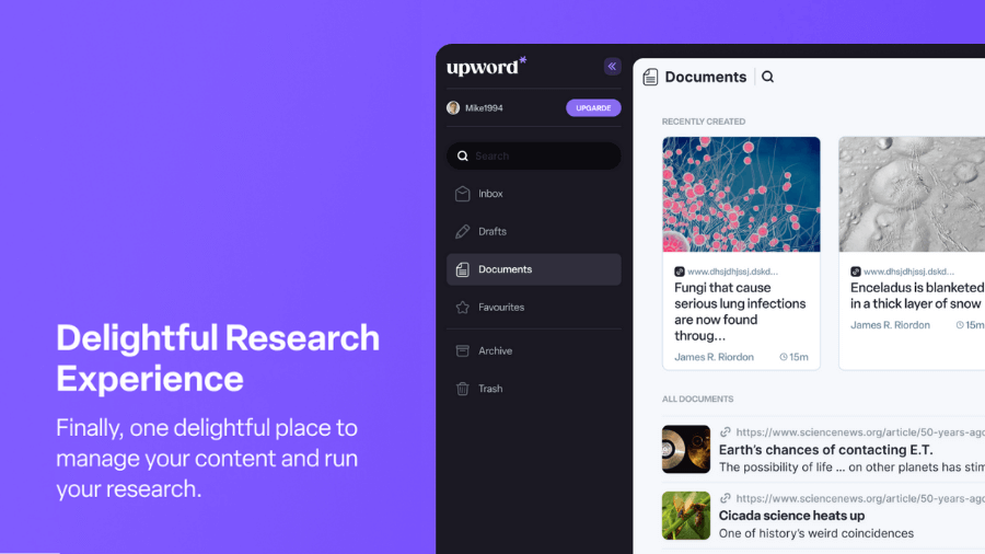 Upword is a tool that makes reading, learning, and organizing your content 10X more efficient. It is like having your own personal research assistant with superpowers. Utilizing world-class GPT models, Upword is like a ChatGPT for your knowledge, so you can easily organize content and run research tasks. Upword is built for knowledge workers who conduct research and need help managing their knowledge and becoming more productive - whether its researchers, marketers, analysts, students etc.